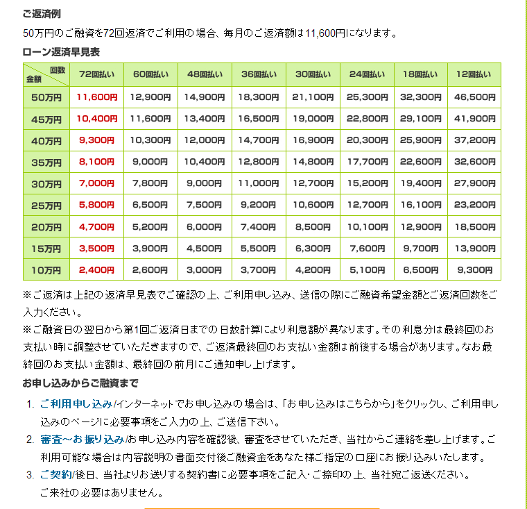 ご返済は毎月の均等返済で12回〜60回払いまでの中から自由に選べます。